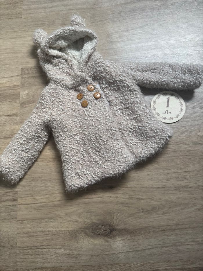 Manteau polaire Moumoute JBC taille 80 Avec oreilles d’ours Très bon état Couleur beige rosé