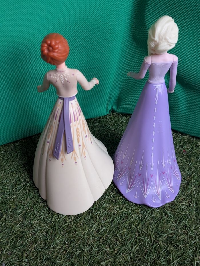 Bonjour Je vends ces deux grandes figurines reine des neiges disney version Maxi kinder en bon état possibilités de traces d'usure puisqu'il s'agit de jouets d'occasion voir photos vous achetez ce que vous voyez