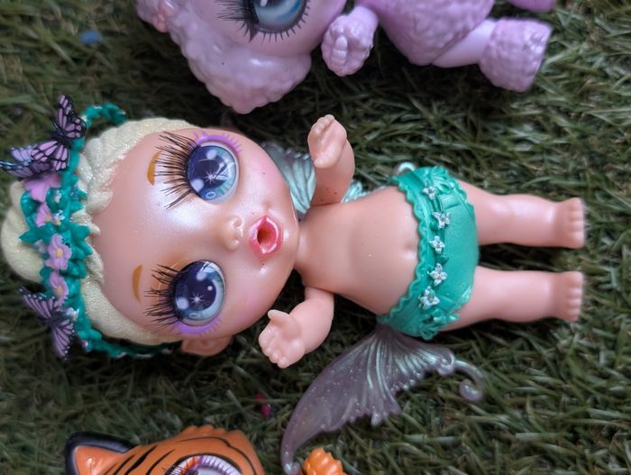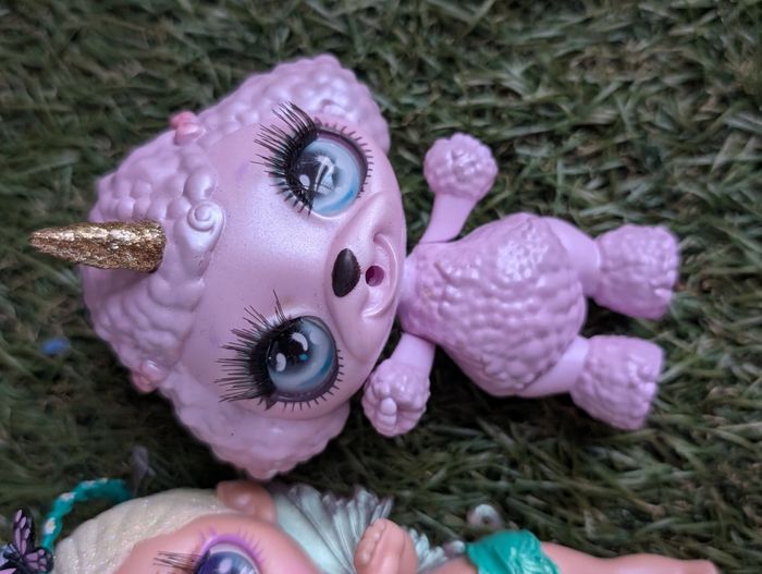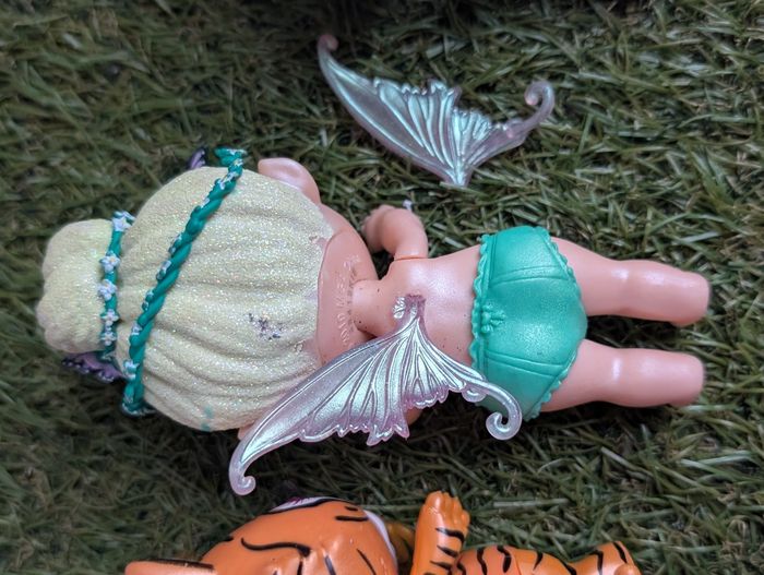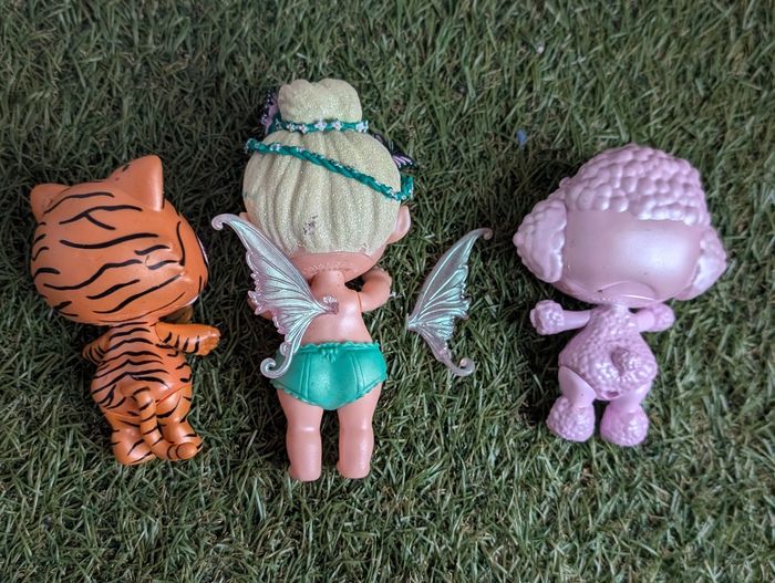 Bonjour Je vends ce lot de 3 poopsies bébé en bon état possibilités de traces d'usure puisqu'il s'agit de jouets d'occasion voir photos vous achetez ce que vous voyez La fée a une aile cassé mais peut être recollée
