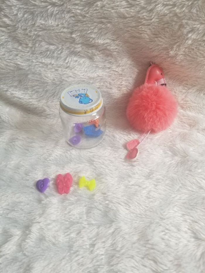 🇨🇵 description : lot de perles colorées barbie cœurs, chaussures et noeud papillon