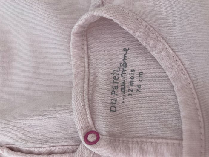 taille 12 mois ouverture par pressions dans le dos étiquette coupée