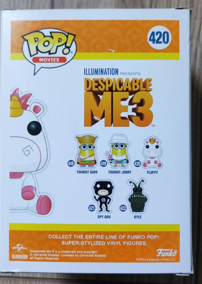 Je vends la Funko Pop Fluffy – Despicable Me 3 (#420), l’adorable licorne de l’univers des Minions ! La figurine est en excellent état et la boîte est également en excellent état, propre et bien conservée. 🏡 Maison non-fumeur 🚚 Envoi rapide et très bien protégé 💰 Prix : 10 € Parfaite pour compléter une collection ou pour un fan de licornes et de l’univers Moi, Moche et Méchant ! Hashtags : #FunkoPop #Fluffy #DespicableMe3 #Minions #FunkoCollection #Pop420 #FigurineVinyle #FunkoPopCollector #ExcellentEtat #MaisonNonFumeur #FunkoAddict #PopMovies #Licorne #Cute #BonPlan #VenteFunko #FunkoFrance #EnvoiRapide #EnvoiProtégé