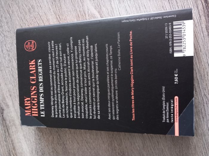 Livre Mary Higgins Clark - Le temps des regrets Très bon état Les 4 coins sont scotchés pour éviter que le livre s'abîme Prix : 4 €