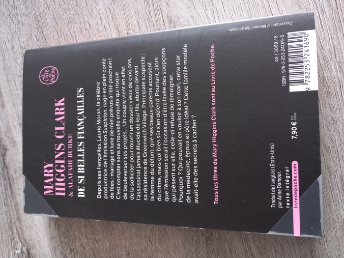Livre Mary Higgins Clark & Alafair Burke - De si belles fiançailles Très bon état Les 4 coins sont scotchés pour éviter que le livre s'abîme Prix : 4 €