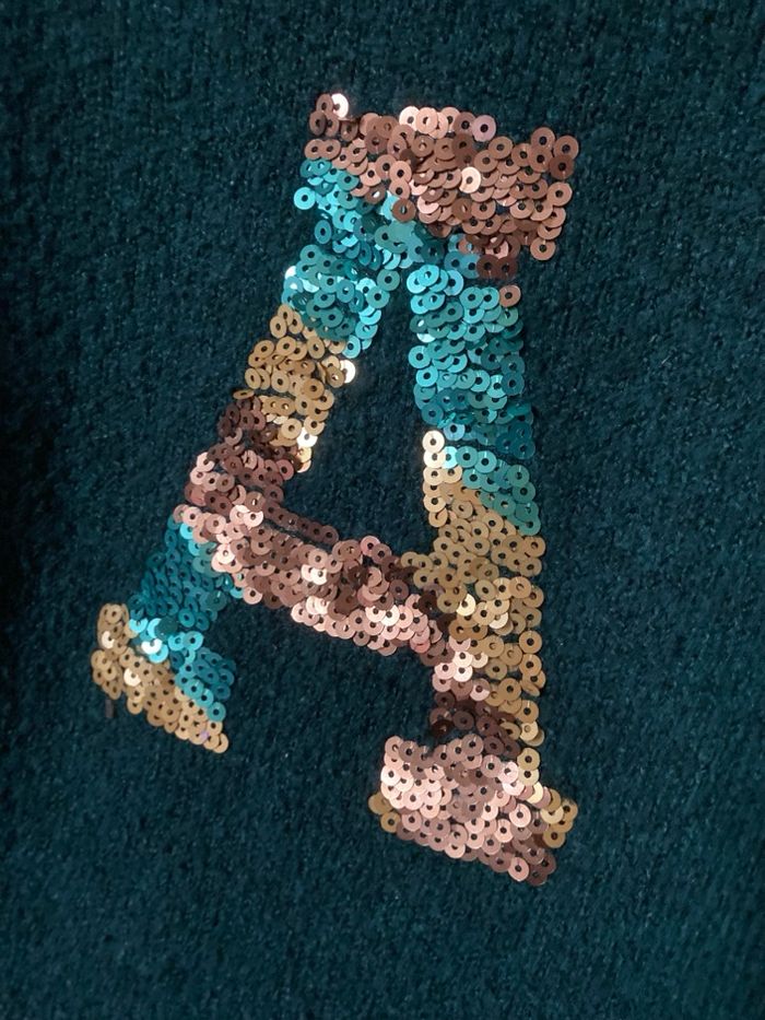 Robe lainage vert bouteille A devant en sequins 10 ans 138-143 cm Kiabi Bon état car bouloches d'usage