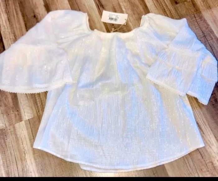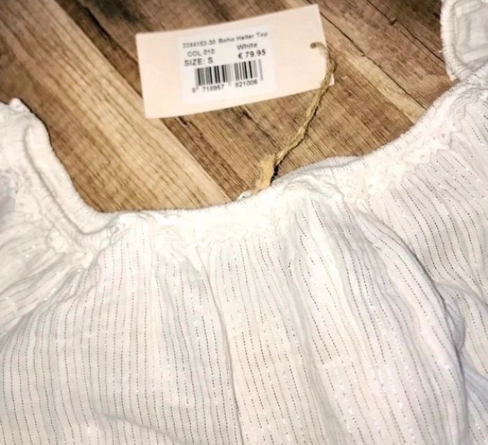 Haut court couleur blanc et fil argenté neuf avec étiquette taille s marque transfer