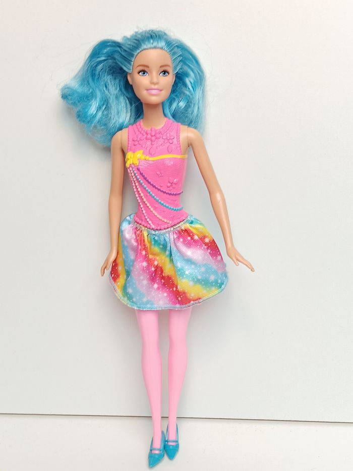 Poupée mattel barbie tenue jupe arc-en-ciel cheveux bleu Poupée et ensemble compris Poupée et ensemble compris Socle non inclus #figurine #jouet #vintage #toys #spielzeug #giochi #barbie #mattel #poupee #garçon #fille #enfants #princesse #doll #calendrierdelavent #noel #cake #cakedecorating #cakedesign #barbie #mattel #disney