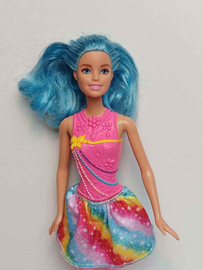 Poupée mattel barbie tenue jupe arc-en-ciel cheveux bleu Poupée et ensemble compris