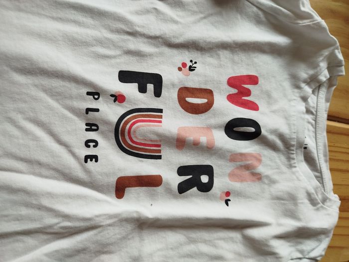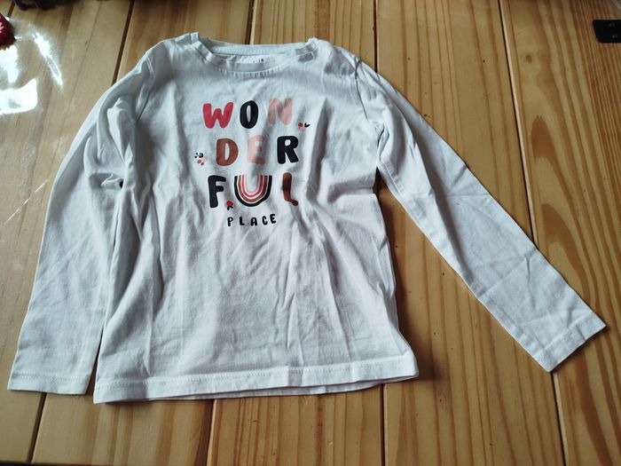Maillot manche longue couleur blanc avec écriture marque Gémo taille 5 ans