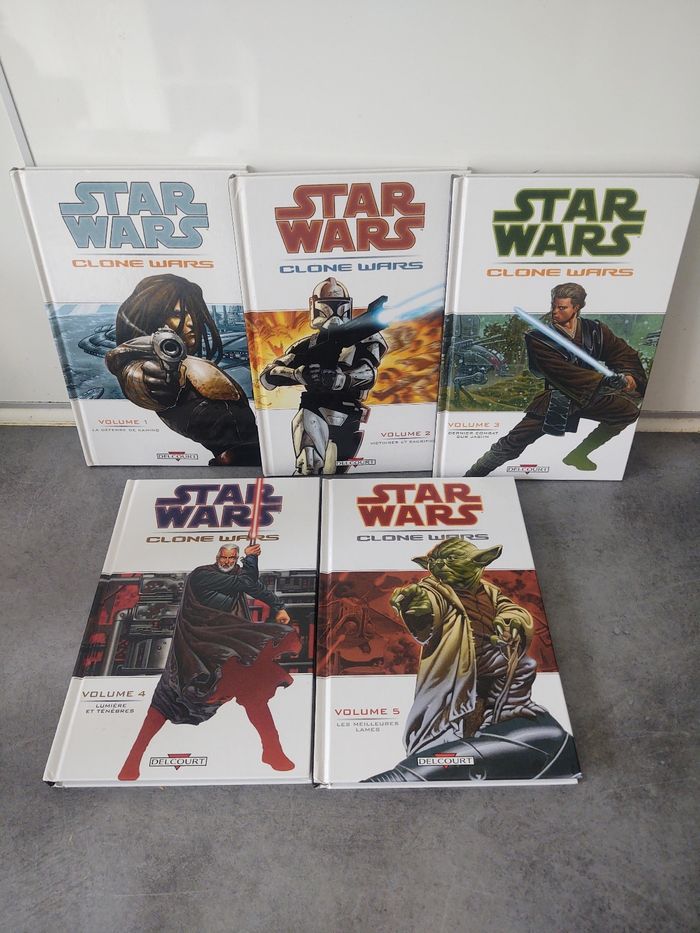 Lot 7 Bd Star Wars, série clone wars aux éditions Delcourt, couverture rigide. Tomes 1 à 5 + Tome 7 et 9. Volume 1 la défense de kamino