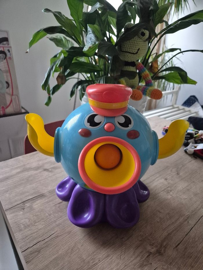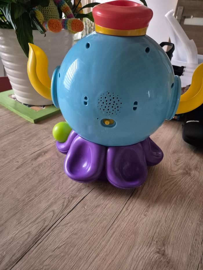 Pieuvre lanceuse de balles qio fonctionne parfaitement, un jouet d'éveil coloré et amusant. Jeu Éducatif - Ouaps - La Pieuvre À Malice - Lance Balles La pieuvre à malice de chez Ouaps bouge en mouvements aléatoires de gauche à droite tout en tournant sur elle-même! Les balles placées dans sa bouche ressortent par le chapeau et l'enfant doit les rattraper. Des effets sonores et une chanson rigolote amuseront l'enfant pendant son jeu. - Fournie avec 3 balles - Fonctionne parfaitement avec 🔋 AA (rechargeable c'est mieux 😉) Un jouet idéal pour les tout-petits ! N'hésitez pas à me contacter pour plus d'informations.