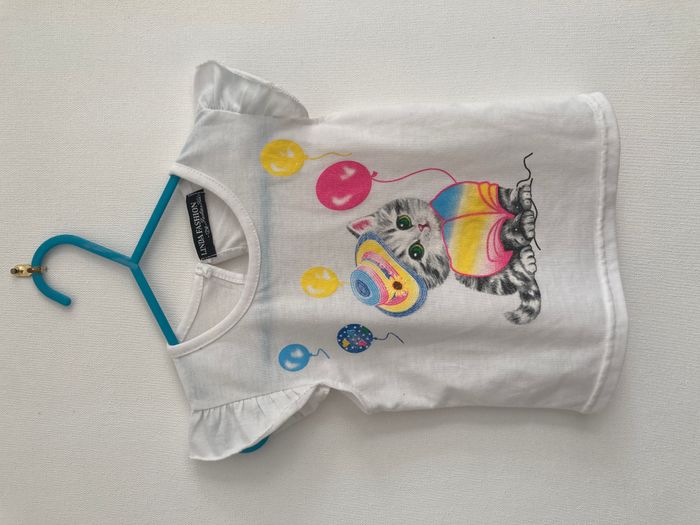 Tee-shirt motif chat en fête fille 12 mois - photo numéro 2