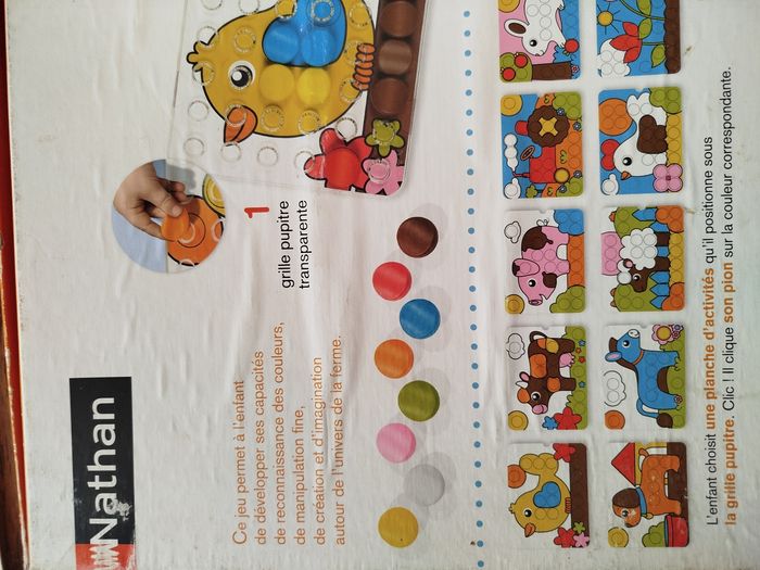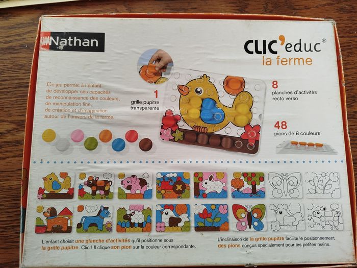 Jeu “Clic Educ – La Ferme” – Nathan Jeu en excellent état, complet et très propre. Idéal pour accompagner l’apprentissage des tout-petits de façon ludique ! Âge : 2-4 ans ✔️ Marque Nathan ✔️ Pièces impeccables ✔️ Parfait pour développer la logique et la motricité Envoi rapide et soigné, ou remise en main propre possible. N’hésite pas si tu veux plus de photos ou d’infos ! 🌟