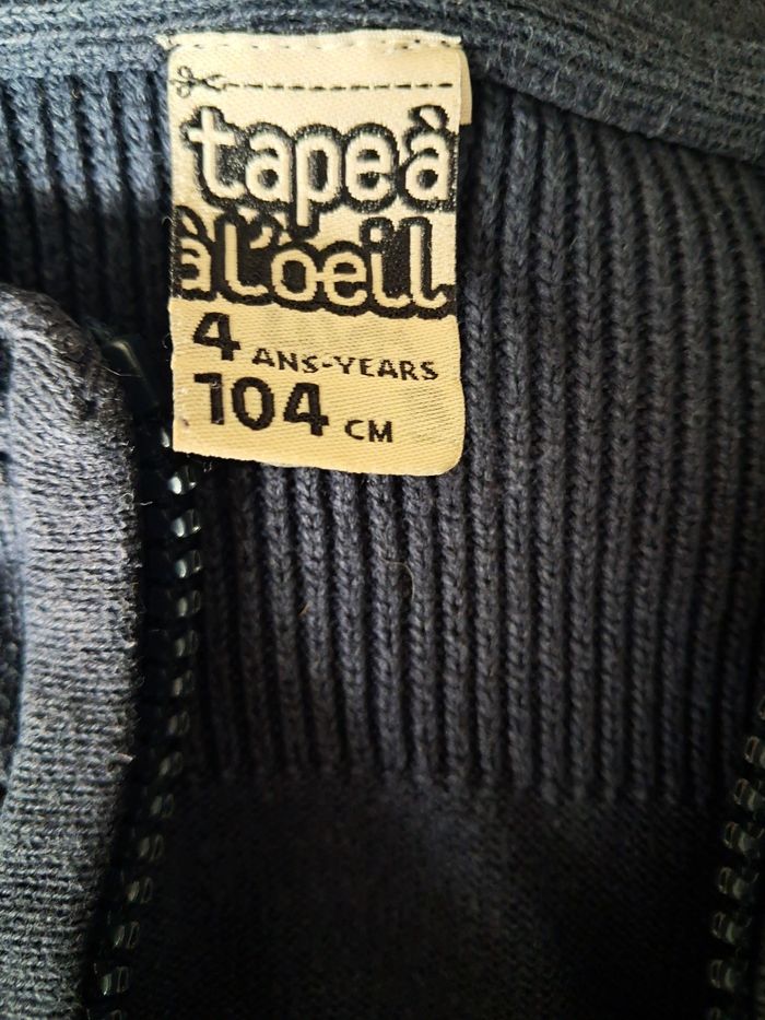 A vendre veste garçon tao bleu nuit zippé. Taille 4 ans Marque tape a l'œil