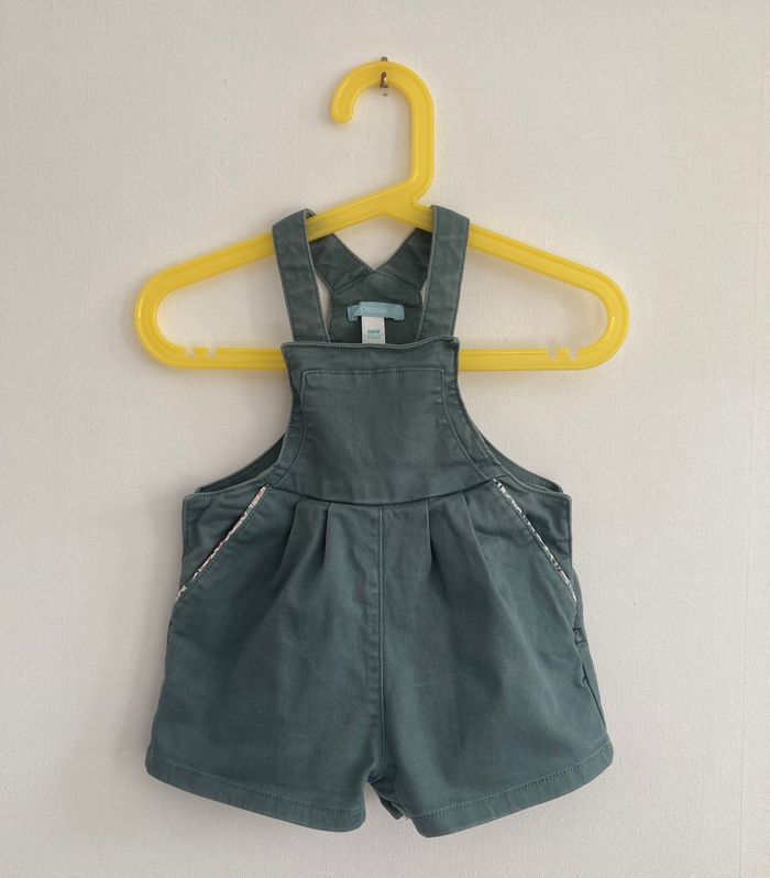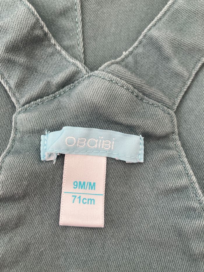 taille 9 mois peu porté aucun défaut en coton épais 2 hauteurs pour les bretelles, pressions à l'entrejambe plus jolie que sur les photos