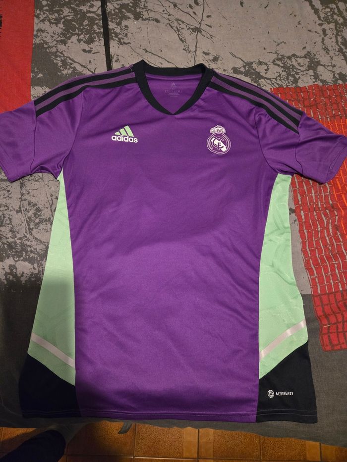 T-shirt du Real de Madrid en taille M, en très bon état de couleur violet et vert