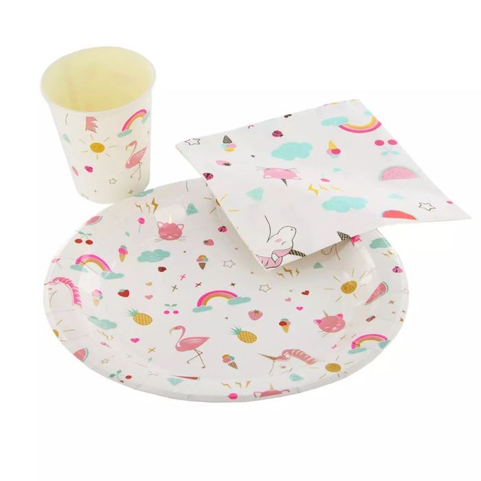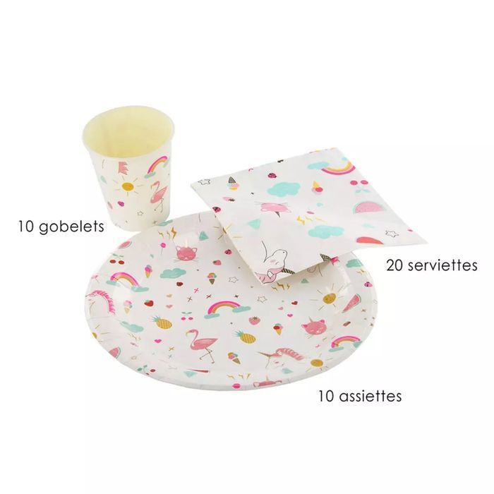Pack anniversaire, fête 10 personnes 'Licorne Mania' pour une fête réussie , contenant 10 gobelets, 10 assiettes, 20 serviettes. Dimensions : 19x19x10 cm🦄