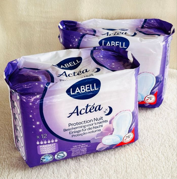 Lot 2 packs de serviettes protection Actéa Maxi Nuit Labell, paquet de 12 unités
