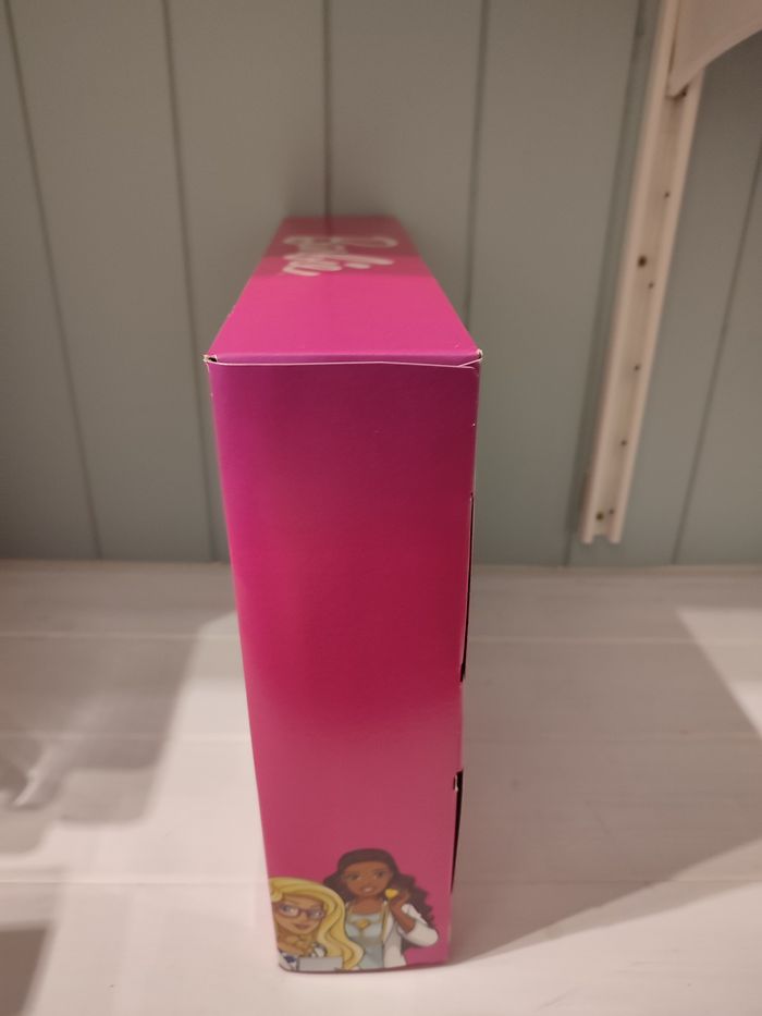 produit neuf scellé Barbie envoi rapide et soigné Explorez un monde plein de plaisir et de soins avec l'ensemble de jeu Barbie Doctor ! Quand les garçons et les filles jouent avec Barbie, ils imaginent tout ce qu'ils peuvent devenir ; si vous aimez prendre soin des autres, devenez médecin ! L'ensemble comprend la poupée Barbie Docteur (30,5 cm) avec une jolie robe à pois, une robe blanche et un stéthoscope, ainsi que plus de 20 accessoires sur le thème médical. Les garçons et les filles peuvent imaginer des histoires amusantes au centre médical, prendre des notes sur l'ordinateur et la tablette, examiner les patients sur la table de diagnostic réglable avec une lampe et un tabouret, mesurer la pression artérielle avec le moniteur, poser un plâtre sur le bras ou la jambe et le décorer avec des autocollants. En outre, ils peuvent examiner les patients avec le thermomètre, l'otoscope, le marteau et d'autres outils, vérifier les rayons X et donner deux mini-magazines Barbie aux patients qui attendent. Vous pouvez également emporter les ustensiles partout avec la mallette médicale ! Certains articles ont un clip pour que le docteur Barbie puisse les tenir pour s'amuser de manière réaliste.