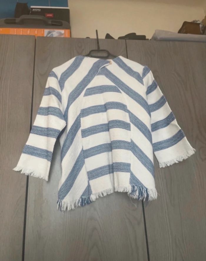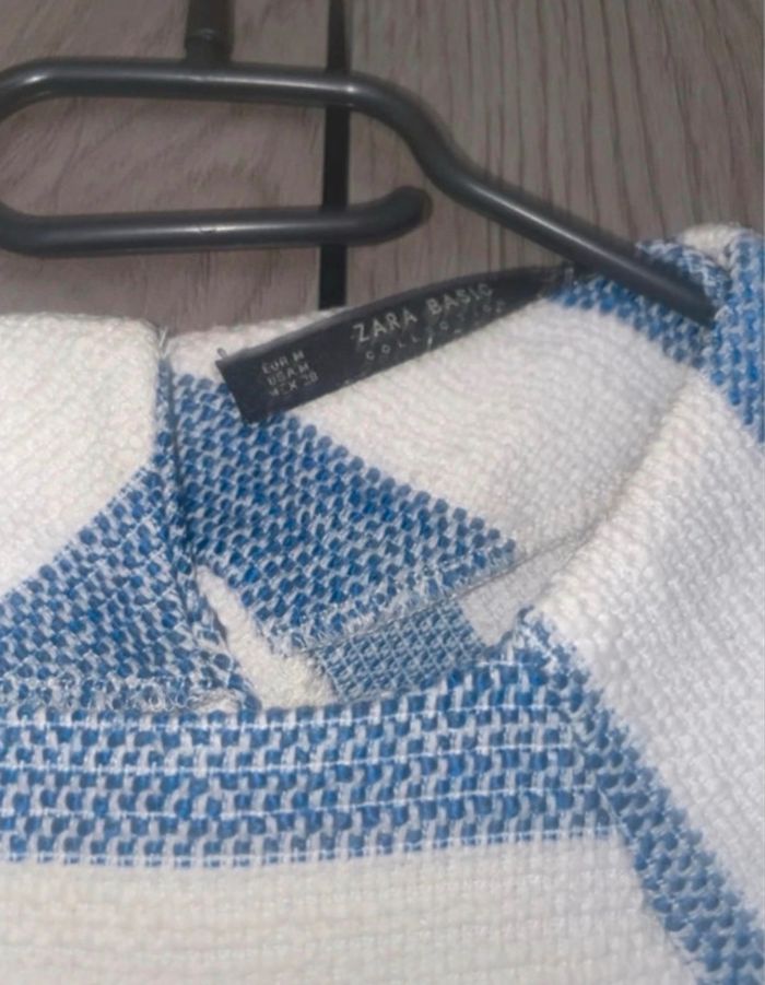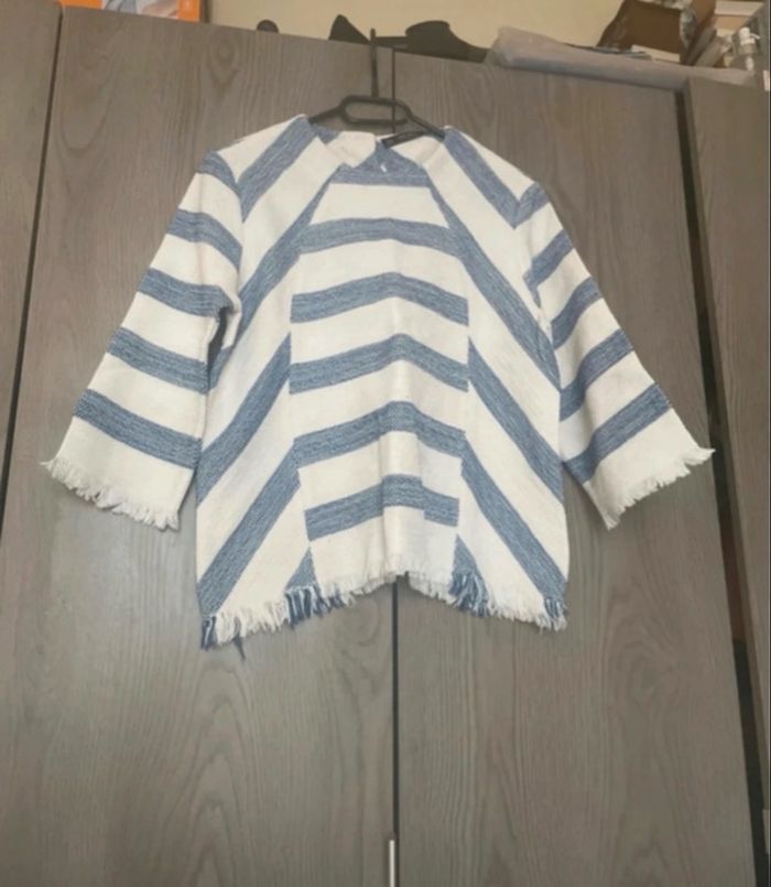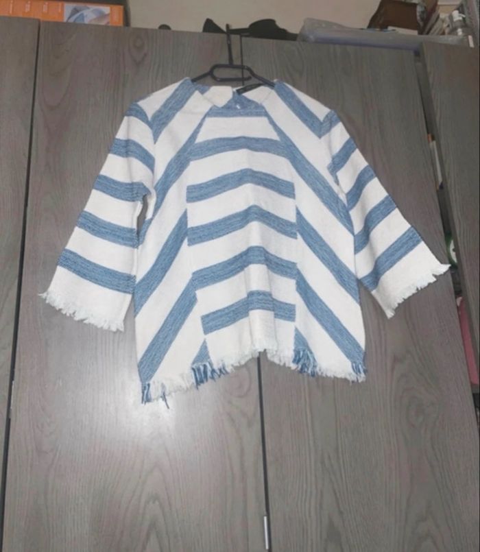 Pull Taille M Blanc et bleu Style marinière Style indien Acrylique Zara Quasi neuf