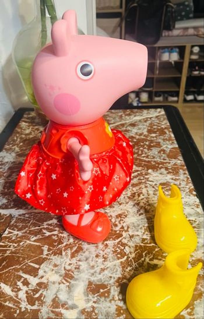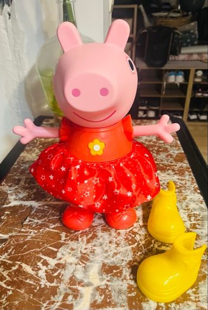 Allez on enfile ses bottes en caoutchouc ! Rejoignez la fête avec Peppa Pig Qui Parle Et Chante, un jouet interactif qui parle, chante et danse. Ce jouet va captiver votre enfant, l'incitant à s'exprimer selon ses envies. A noter la qualité du design.