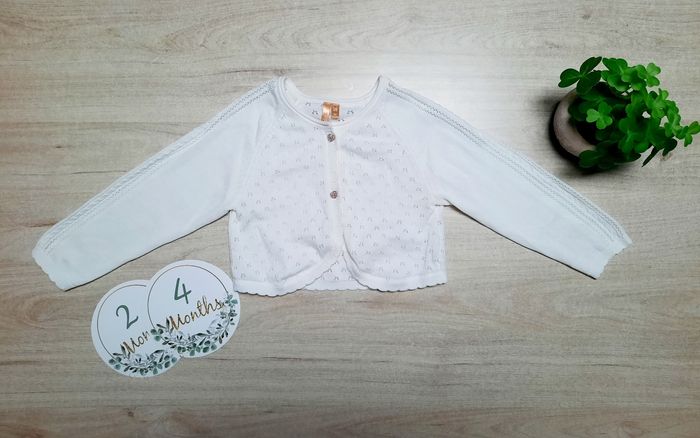 ✨️gilet à manches longues en tricot fantaisie couleur crème boutons cœurs pailleté taille grand 23mois