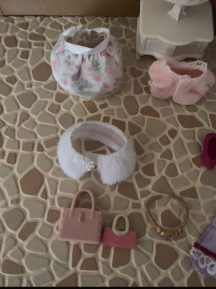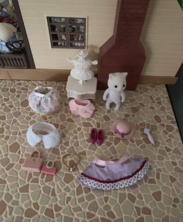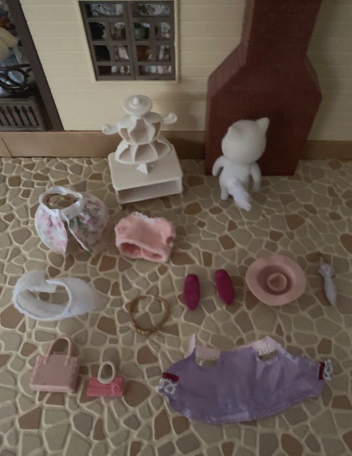 Inclus: 1 figurine la fille chat persan, 1 mannequin, 1 haut, 1 jupe, 1 cape, 1 chapeau, 1 paire de chaussure à talon, 1 collier, 1 sac à main, 1 pochette, 1 parapluie
