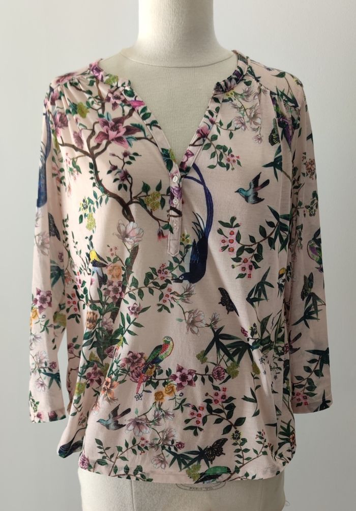 Blouse à manches 3/4, de marque H&M, de taille M et de couleur rose à motif floral pour femme Blouse en polyester, légère, idéal pour la mi saison et l'été, en très bon état. Expédition dès le lendemain. Tour de poitrine 92cm Tour de taille 90cm Largeur épaule 43cm Longueur manches 44cm Longueur totale 61cm Prix 5€