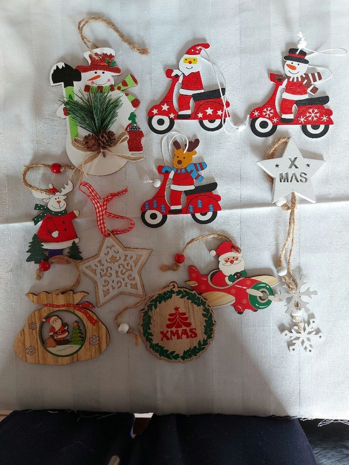 Lot 15 10 suspensions pour le sapin, Noël, en bois Neuves