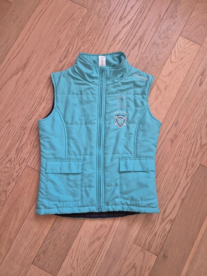 Doudoune sans manche d'équitation/ poney, en très bon état - Marque : Fouganza (Decathlon) - Taille : 12 ans - Coloris : bleu turquoise - Poches intérieure et extérieures avec scratch - Composition : 100% polyester - Lavable en machine à 40°C - Maison non fumeur #elfedneiges12ans #elfedneigesfille #elfedneigessport 🐎