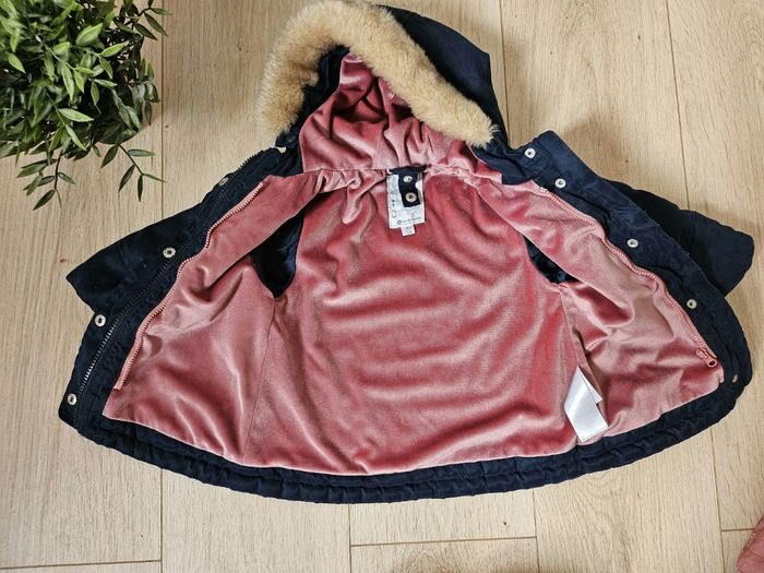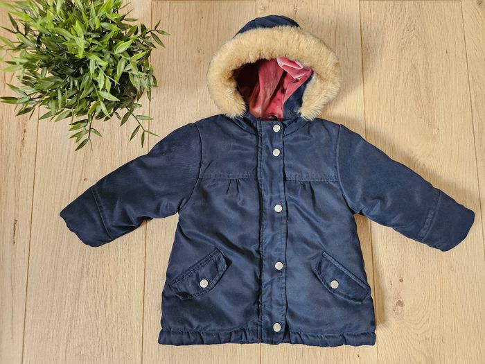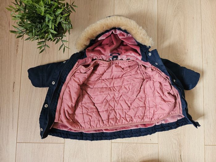 Parka bleu marine avec capuche fausse fourrure + doudoune matelassé rose intégré fleuri Taille 12 mois Vertbaudet En excellent etat 🏷 Réduction en lot activée #fla8bebe #fla8bebe12mois