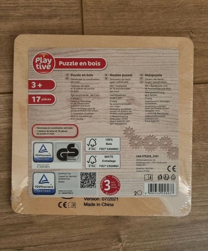 Bonjour 👋 Je propose ce petit puzzle en bois. Neuf --> jamais ouvert.... Idéale pour offrir... N hésitez pas à faire un lot 🙂