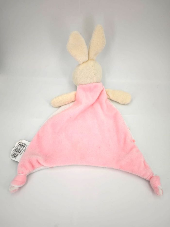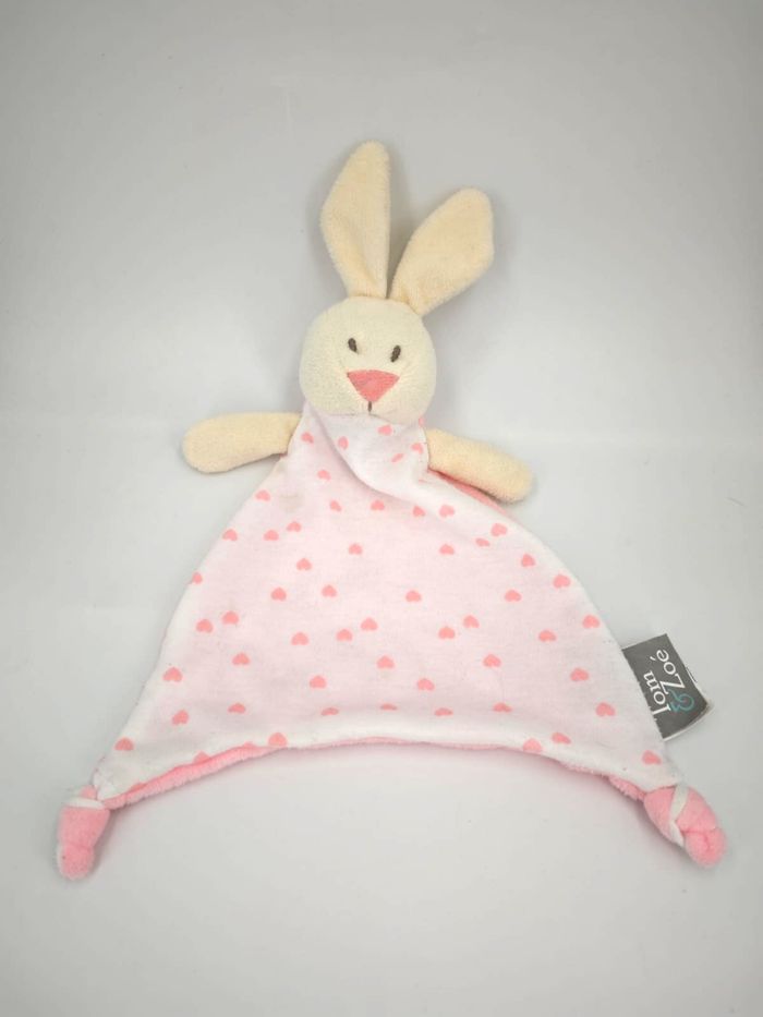 🐰 Doudou Plat Lapin Crème, Blanc et rose avec motos coeurs