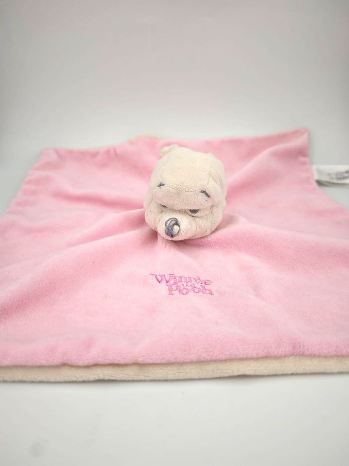 🐻‍❄️ Doudou Plat Winnie the Pooh Rose et crème Nicotoy Disney 📏 Dimension : 25 x 25 cm environ ✨ État : Occasion, bon état, couture du nez abimée, prénom de l'ancienne propriétaire sur l'étiquette tissu 🧼 Propre 👀 Vous achetez la peluche que vous voyez sur les photos 🚭 NON FUMEUR et sans odeurs d'animaux 📬 Envoi rapide sous maximum 3 jours #alsalienicotoy #alsaliedisney #alsaliewinnie