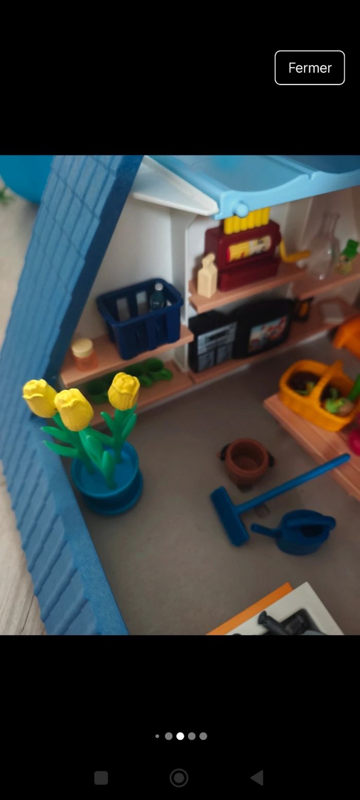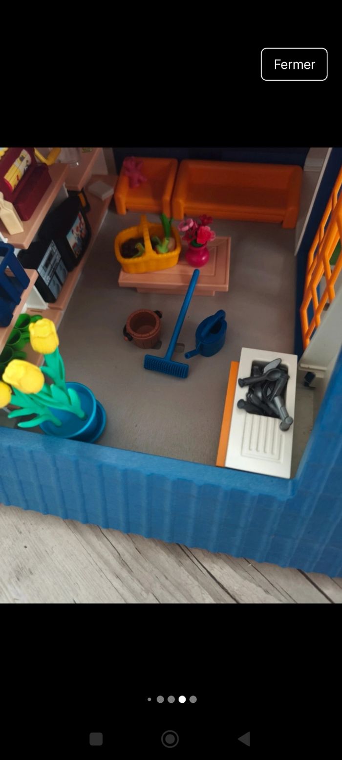 Certains accessoires comme la plante, ne sont pas playmobil, mais mon fils jouait avec au playmobil. Donc j'ai laissé .