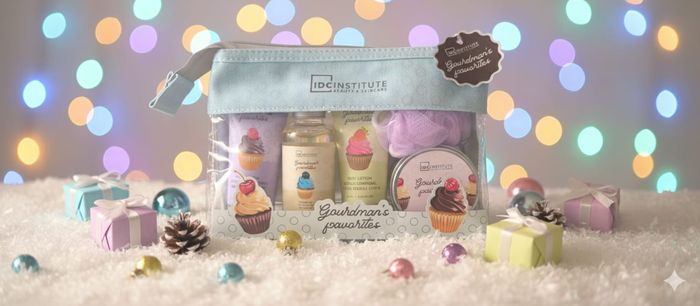 ​Craquez pour cette adorable trousse de toilette, un véritable concentré de plaisirs gourmands pour la peau ! Avec ses illustrations de délicieux cupcakes, ce coffret est présenté dans une ambiance lumineuse et pastel qui appelle à la fête et à la douceur. ​ Un Rituel 100% Gourmandise ​Ce kit de voyage est idéal pour les petites évasions ou pour apporter une touche de fantaisie à la salle de bain, avec une senteur "Gourmand's Favorites" (Favoris Gourmands) qui promet un moment de pur réconfort olfactif. ​La trousse comprend : ​1 Gel Douche (100 ml) : Pour une douche douce qui éveille les sens avec une touche de gourmandise. ​1 Lotion pour le Corps (60 ml) : Hydrate sans graisser, laissant la peau souple et délicatement parfumée. ​1 Gommage Corporel (60 ml) : Élimine les peaux mortes pour une peau incroyablement lisse et douce, comme un dessert ! ​1 Sels de Bain (60 g) : Pour un bain relaxant, transformant l'eau en une bulle de douceur. ​1 Fleur de Bain : L'accessoire indispensable pour une mousse généreuse. ​1 Trousse de Toilette : Réutilisable et pratique, aux couleurs douces pour y glisser tous vos essentiels. ​Un cadeau ludique, pratique et irrésistiblement mignon ! ​Prix : 16,50€ (Le cadeau parfait pour les fans de cupcakes et de cocooning !)