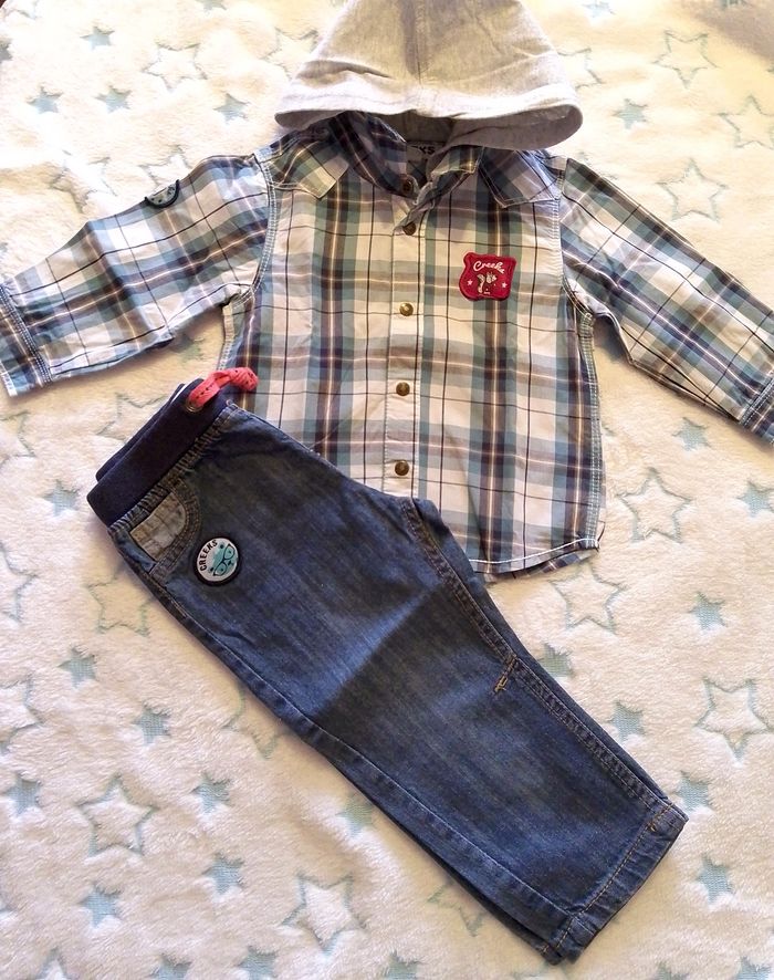 Ensemble Creeks 12M – Chemise capuche + jean – Très bon état - photo numéro 1