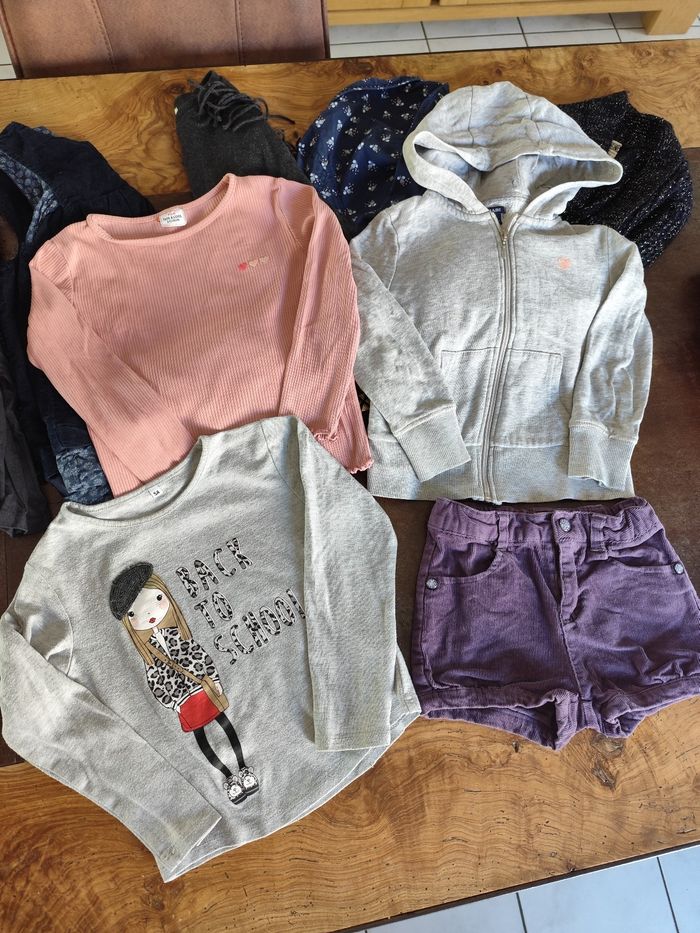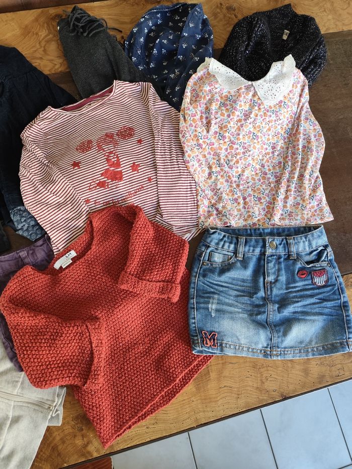 Lot vêtements fille 5 ans hiver pulls gilets robes jupes Tee shirts