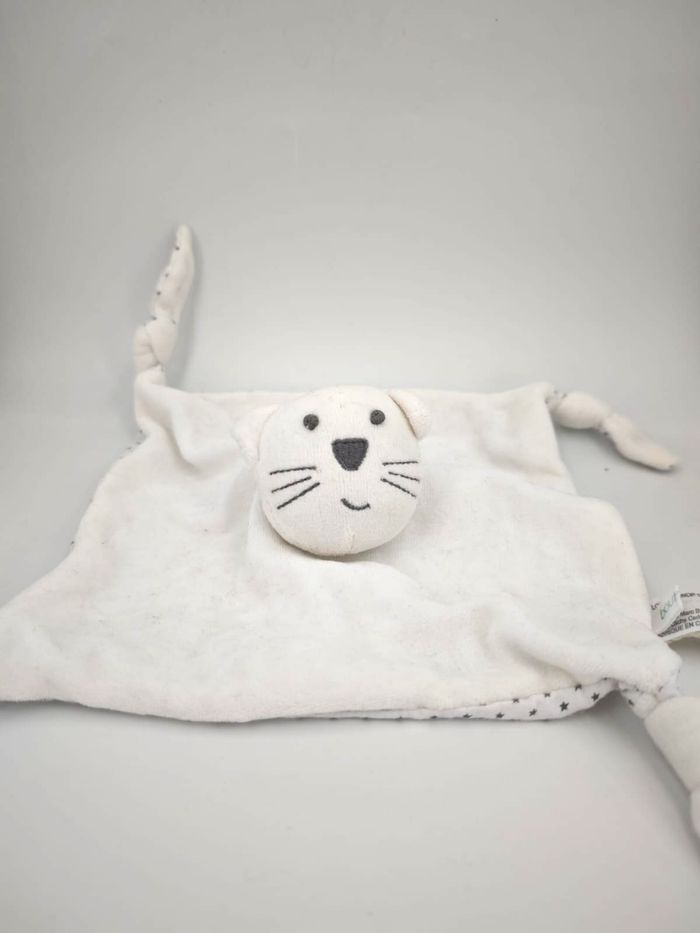 😺 Doudou Plat Chat Blanc, verso à motif étoiles Bout'Chou 📏 Dimension : 20 x 20 cm environ ✨ État : Occasion, très bon état 🧼 Propre 👀 Vous achetez la peluche que vous voyez sur les photos 🚭 NON FUMEUR et sans odeurs d'animaux 📬 Envoi rapide sous maximum 3 jours #alsalieboutchou #alsaliechat