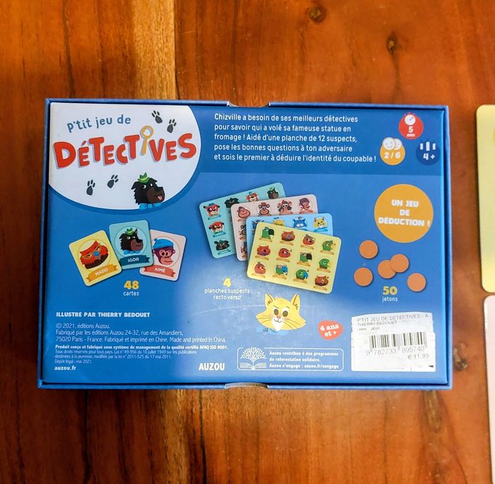 Jeu de devinette, "P'tit jeu de détectives" de Auzou en excellent état et complet.