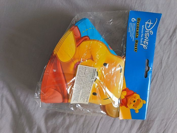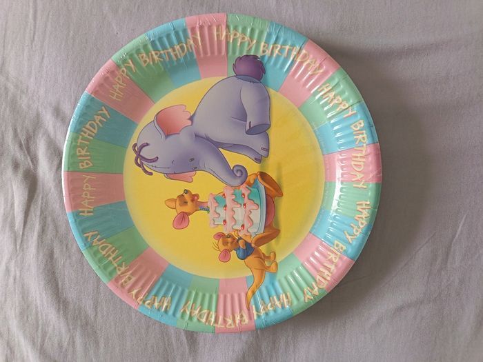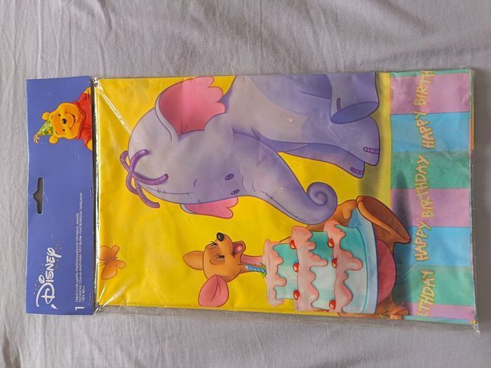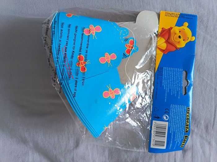 Ensemble Disney Winnie l'ourson comprenant 10 assiettes carton 23 cm, une nappe 120x180 cm, 5 chapeaux avec élastique. Et 4 cartons de table Looney Tunes. Envoi rapide. Prix négociable.