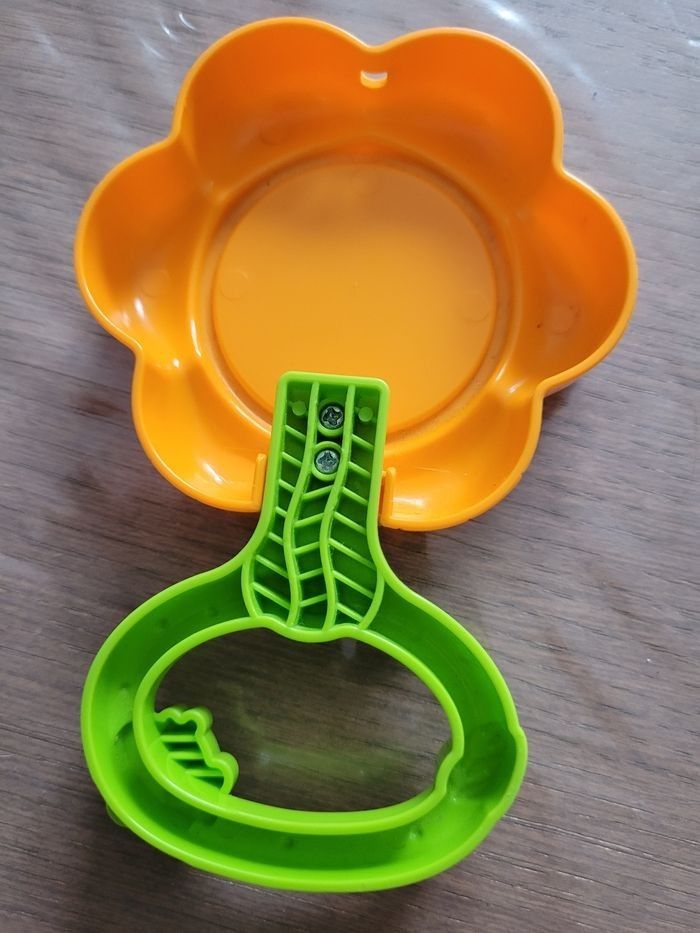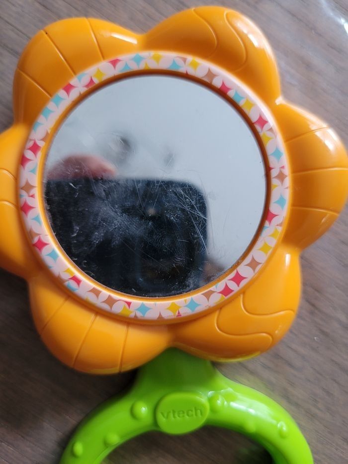 Seul le miroir de la fleur est abîmé mais les enfants s'y voient quand même.