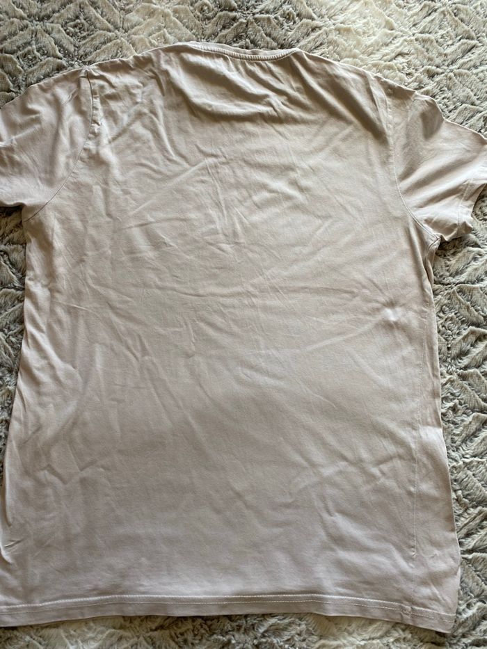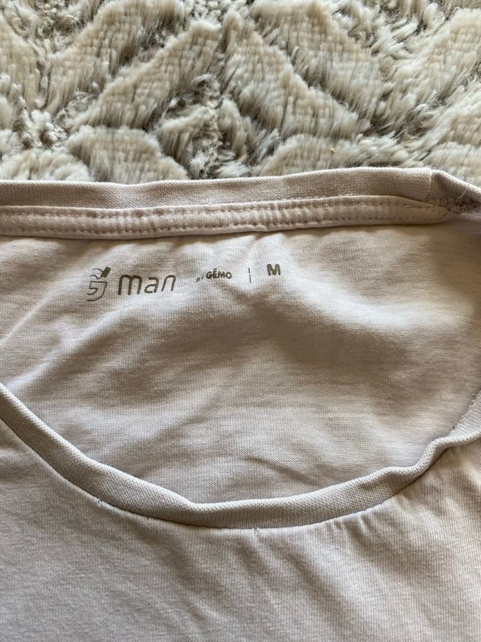 - Type de produit : T-shirt manches courtes, col rond, aisselles 52 cm, épaules 40 cm, longueur totale 68 cm. 100% coton. Bon état