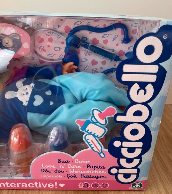 Cicciobello Bobo est malade : ses joues sont toutes rouges. Vite, prenez sa température pour regarder s'il a de la fièvre et écoutez son cœur avec le stéthoscope. Donnez lui des médicaments pour le calmer.