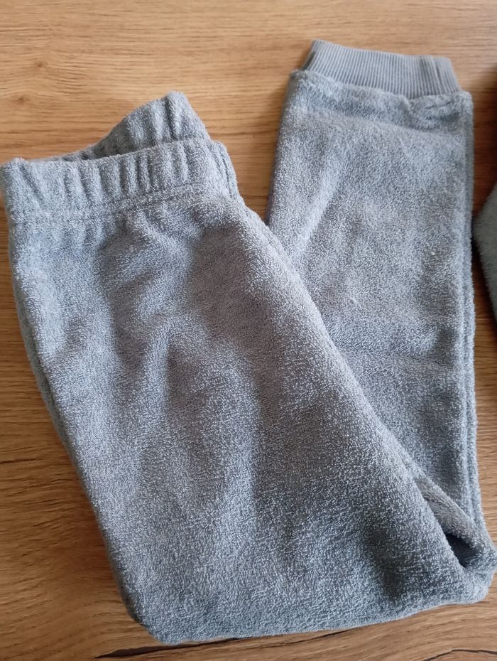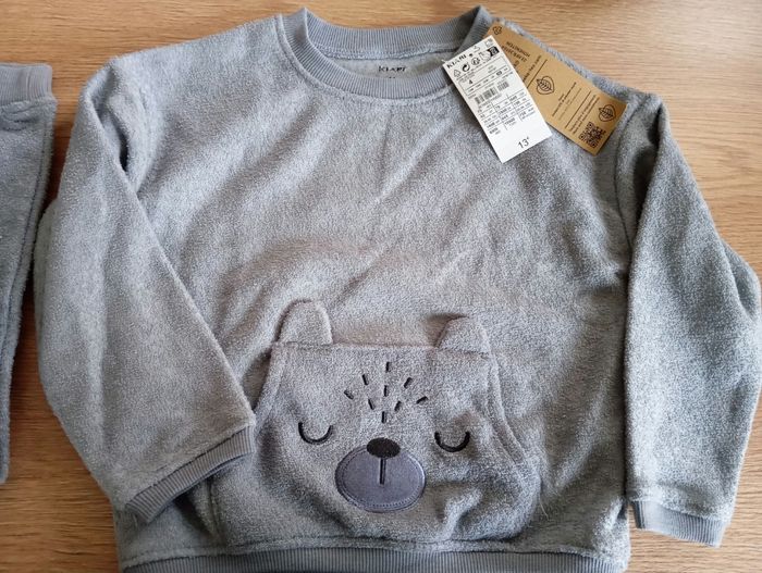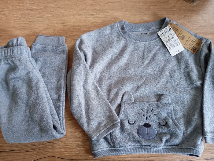 Pyjama épais et tout doux pour l'hiver. Neuf encore étiquetté, cadeau qui ne plais pas a mon fils. Couleurs bleu/gris 4 ans