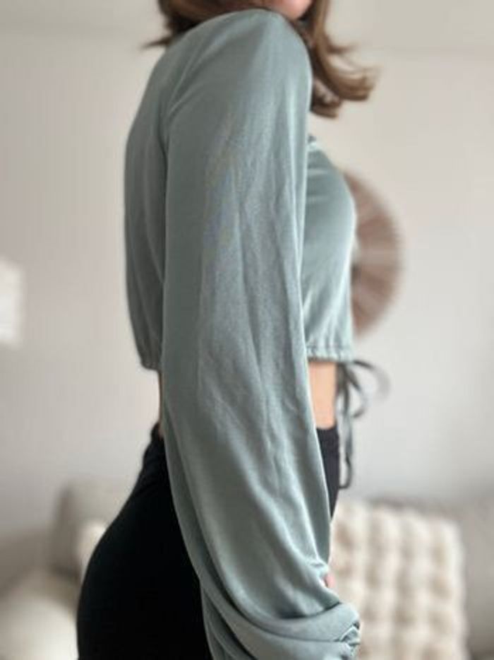 Taille 36 Magnifique top manche longue noué devant Voir photo : petites taches peu voyantes sur une manche