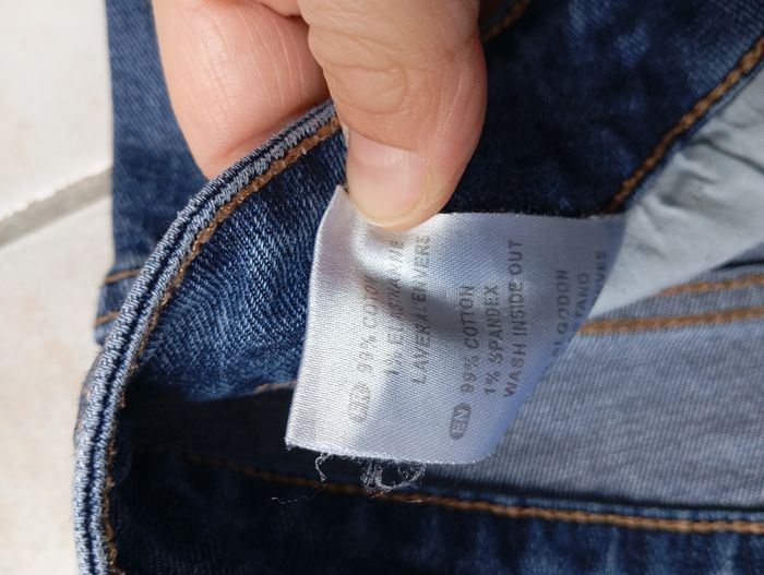 Acheté d'occasion mais ne me convient pas car trop petit. Taille 40, taille très haute 99% coton, très confortable