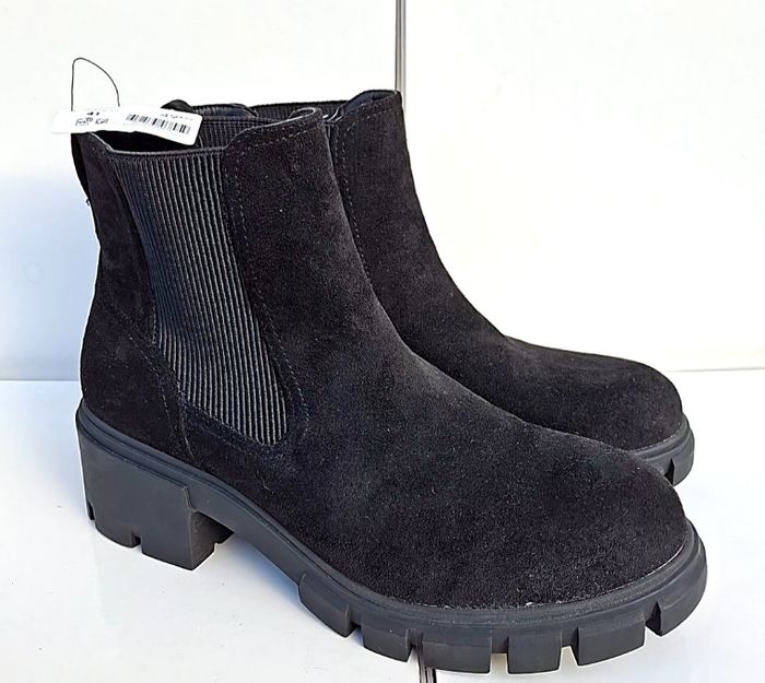 Bottines chelsea talons crantés Taille 41 Neuve jamais porté avec étiquette 🏷 Forme chelsea Empiècements élastiqués sur les côtés Talon carré Semelle crantée pour plus de confort 😊 Bottines Boots Chelsea bottes 👢 Chaussure ideal en toutes occasions Confortable casual Décontracté Habillé chill #bottines #chelseaboots