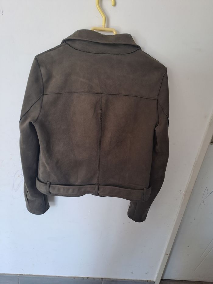 Veste style perfecto biker effet Daim Kaki - photo numéro 9
