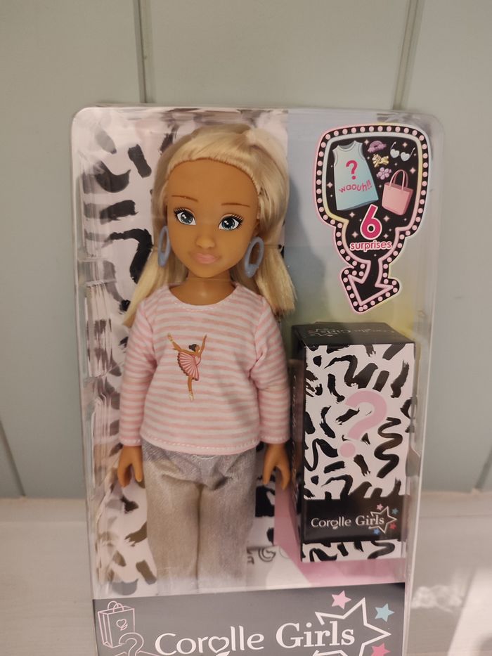 produit neuf Corolle girls envoi rapide et soigné Valentine porte un pantalon gris, un t-shirt manches longues rayé, une paire de bottines amovibles et une paire de boucles d'oreille amovibles. C'est le look parfait pour aller faire du shopping entre copines. D'ailleurs, elle vienty de recevoir un colis : Elle vient de recevoir 1 colis avec 6 accessoires surprises : 1 robe, 1 sac à main, 1 paire de lunettes de soleil et 3 pinces à cheveux.